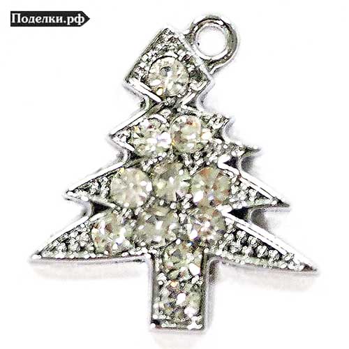 Подвеска Елка со стразами 0008410 серебряный цвет 22x20 мм