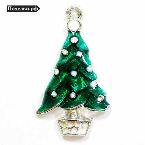 Подвеска Елка в снегу 0008419 серебряный цвет 25x20 мм