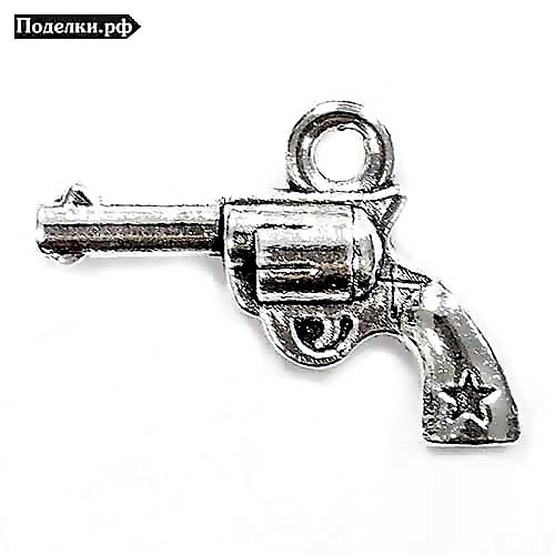 Подвеска Пистолет со звездочкой 0008427 серебряный цвет 21x11 мм