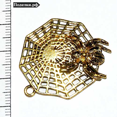 подвеска паутина с пауком 0008436 золотой цвет 35x30 мм