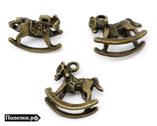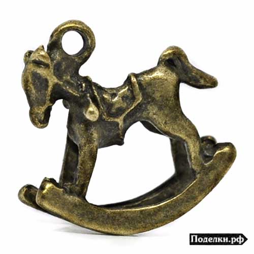 Подвеска Лошадка Качалка мини объемная 0008441 бронзовый цвет 15x14x5 мм