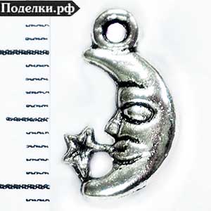 Подвеска Месяц со звездой 0008445 серебряный цвет 15x9 мм