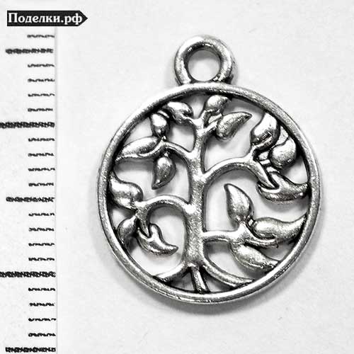 Подвеска Дерево в круге 0008446 серебряный цвет 19x15 мм