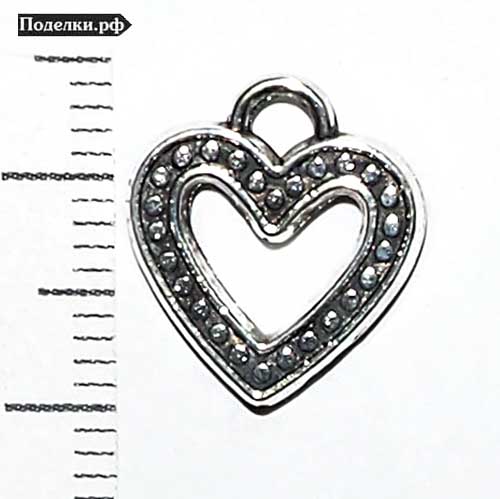 Подвеска Сердце пустое 0008456 серебряный цвет 15x12х2 мм