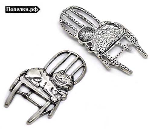 Подвеска Чеширский кот на стуле 0008461 серебряный цвет 41x22 мм