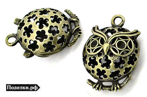подвеска сова прозрачная 0008465 бронзовый цвет 35x25x18 мм