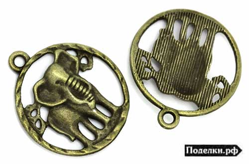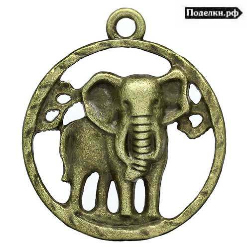 подвеска слон в круге 0008472 бронзовый цвет 31x27 мм