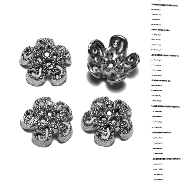 Крепежная шапочка литая Цветок узорный пятилистный 0008565 серебряный цвет 9x4 мм
