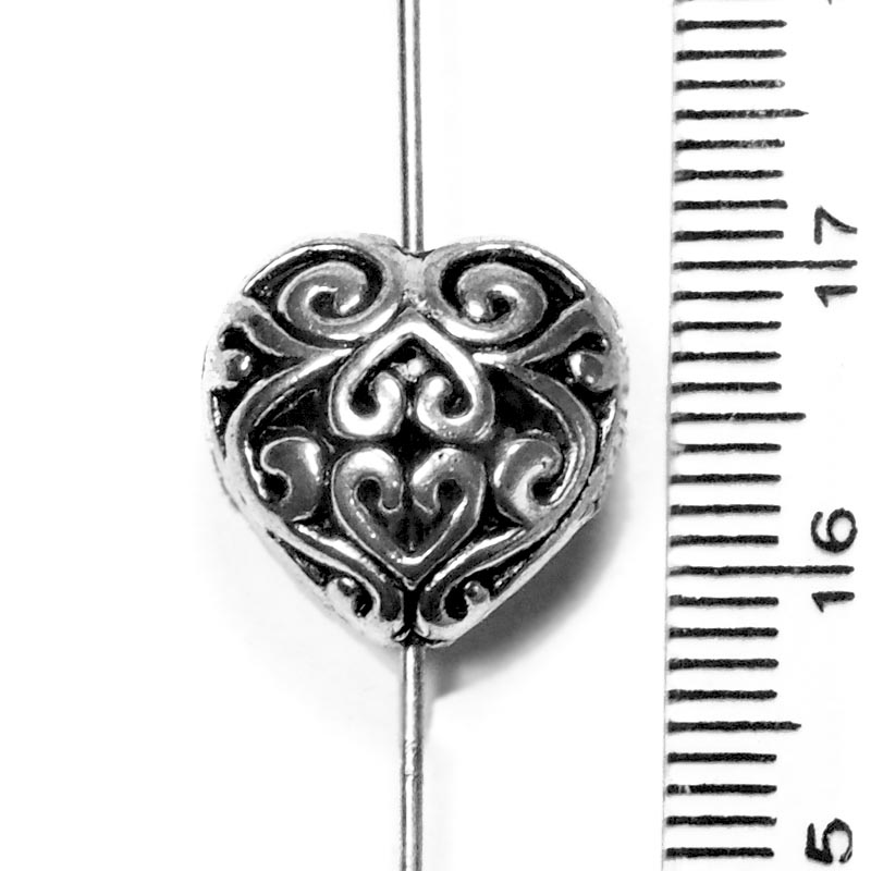 Металлическая бусина Сердце прозрачное узорное 0008578 серебряный цвет 14x14x8 мм