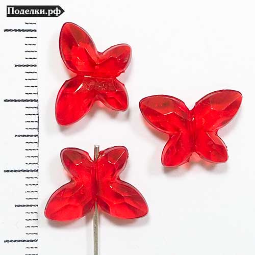 Акриловая бусина Бабочка прозрачная 0008625 красный цвет 16х11мм