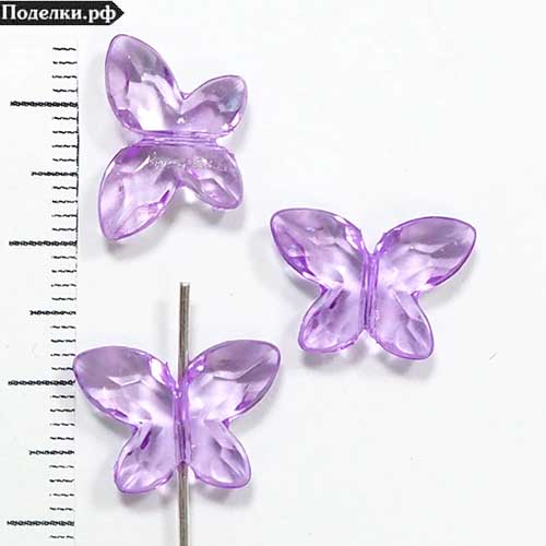 Акриловая бусина Бабочка прозрачная 0008627 сиреневый цвет 16х11мм