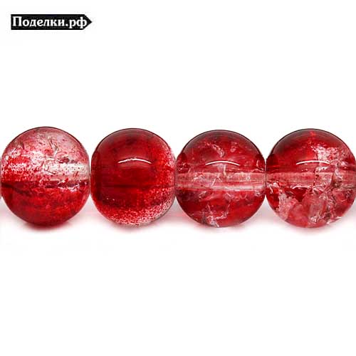 Натуральная бусина Кварц ледяной половинчатый тонированный красный с прозрачным 0008708 шарик 8 мм