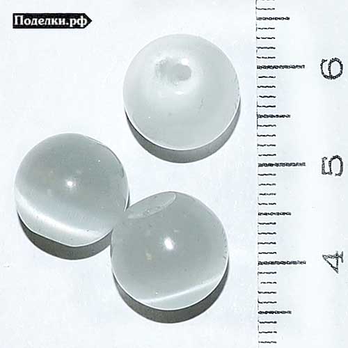 Натуральная бусина под Кошачий глаз белый 0008730 шарик 12 мм