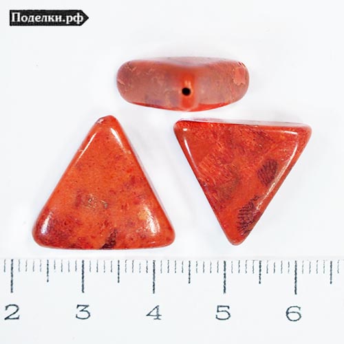 Натуральная бусина Коралл оранжевый 0008748 треугольних 20 мм