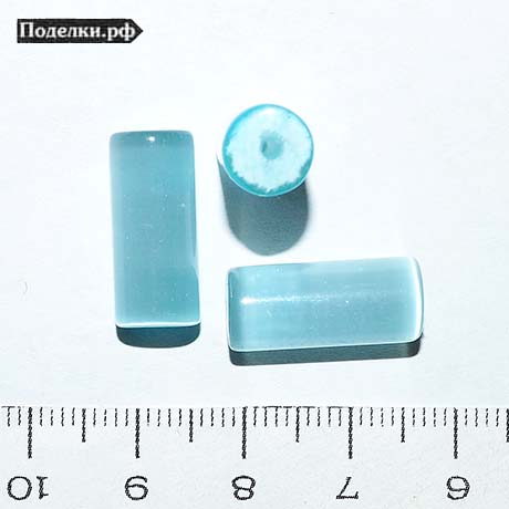 Натуральная бусина под Кошачий глаз светло-голубой 0008773 цилиндр 18х10мм
