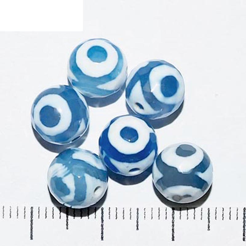 Натуральная бусина Дзи Агат глазастый голубой 0008793 шарик граненый 8 мм