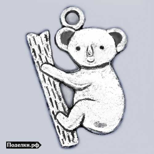 Подвеска Коала 0008801 серебряный цвет 20x14x2 мм