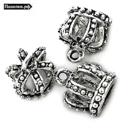 подвеска корона объемная 0008804 серебряный цвет 16x15x15 мм