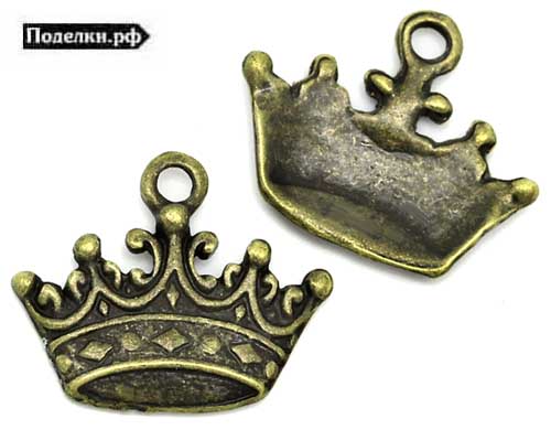 Подвеска Корона Царская плоская 0008812 бронзовый цвет 17x14 мм