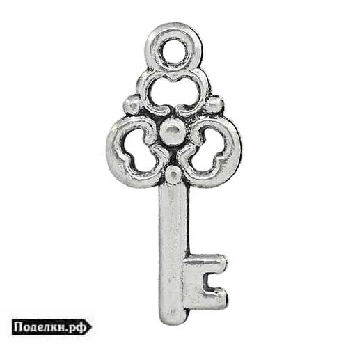 Подвеска Ключик Цветок 0008820 серебряный цвет 23x10 мм