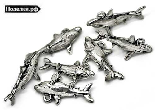 Подвеска Акула 0008828 серебряный цвет 26x13x10 мм