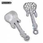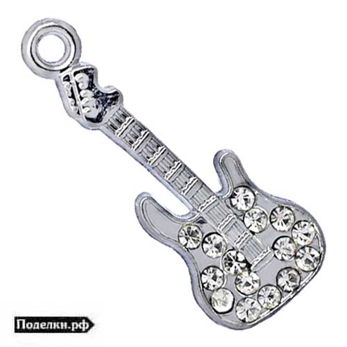 Подвеска Гитара с прозрачными стразами 0008838 серебряный цвет 31x12x3 мм