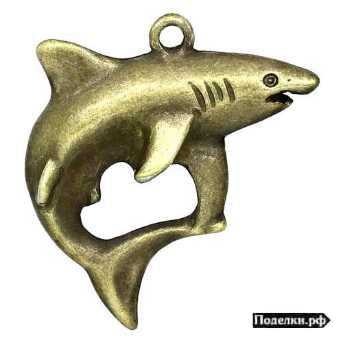 Подвеска Акула изогнутая 0008851 бронзовый цвет 23x23x5 мм