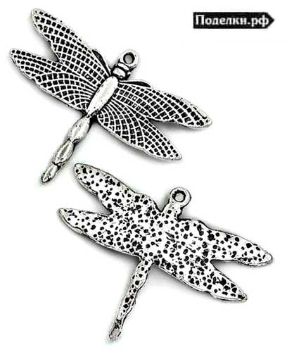 подвеска стрекоза 0008860 серебряный цвет 36x28 мм