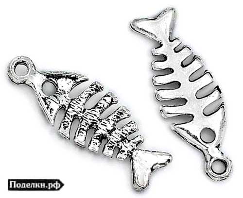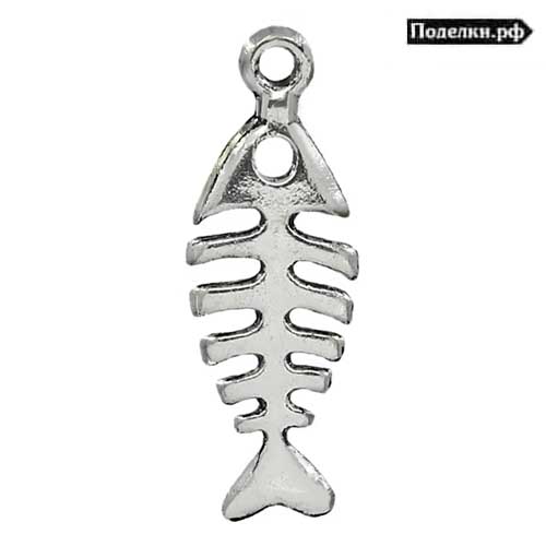 Подвеска Рыбная кость 0008862 серебряный цвет 27x9 мм