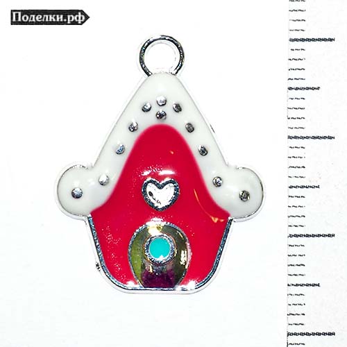 Подвеска Зимний домик 0008865 серебряный цвет 27x22 мм