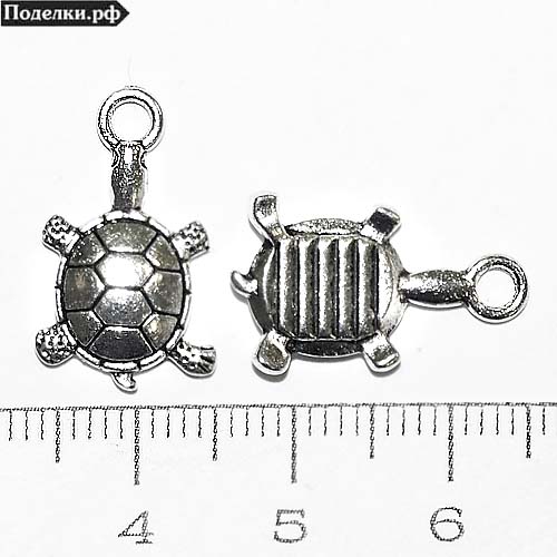 Подвеска Черепаха плоская мини 0008873 серебряный цвет 19x12 мм
