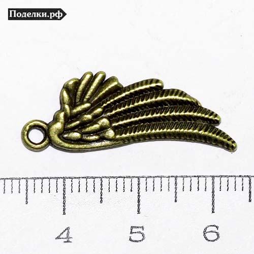 Подвеска Крыло рельефное 0008881 бронзовый цвет 30x10 мм