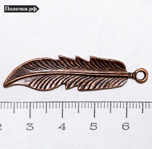 Подвеска Перо длинное 0008882 медный цвет 45x10 мм