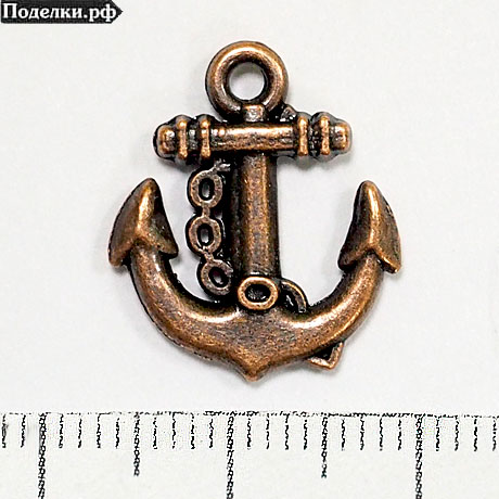 Подвеска Якорь с цепью 0008883 медный цвет 18x16 мм