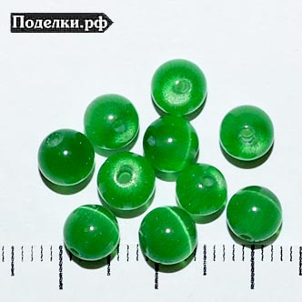Натуральная бусина под Кошачий глаз зеленый 0009003 шарик 6 мм