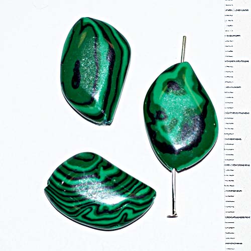 Натуральная бусина под Малахит 0009079 листик 21х14 мм