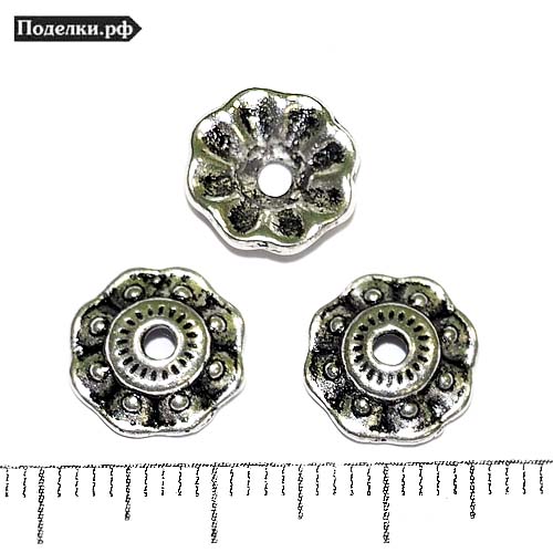 Крепежная шапочка литая Щит цветочный 0009100 серебряный цвет 12x2 мм