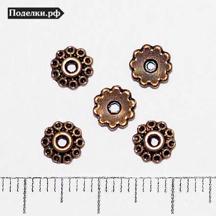 Крепежная шапочка литая Цветочек из кружков 0009102 медный цвет 6x1 мм