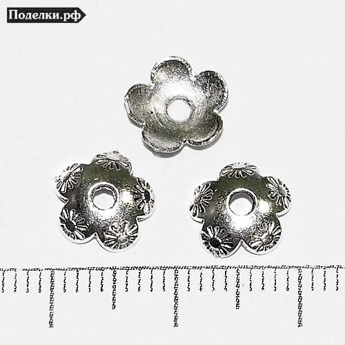 Крепежная шапочка литая Цветок пятилистный 0009104 серебряный цвет 9x3 мм
