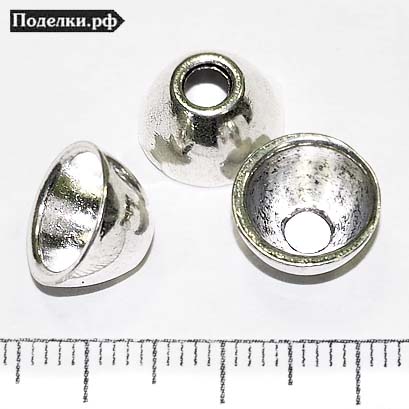 Крепежная шапочка литая Колокольчик простой 0009123 серебряный цвет 11x7 мм