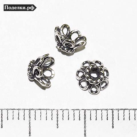 Крепежная шапочка литая Бали Колокольчик семилистный 0009127 серебро 6x4 мм