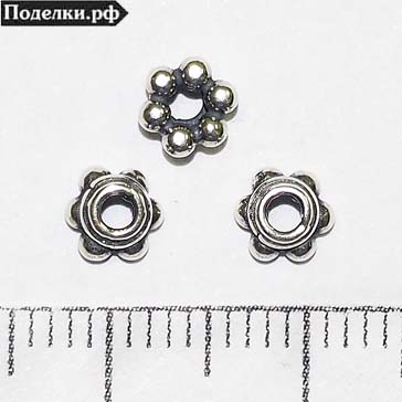 Крепежная шапочка литая Бали Цилиндрик с шариками 0009128 серебро 5x3 мм