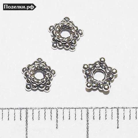 Крепежная шапочка литая Бали Звездочка 0009130 серебро 6x3 мм