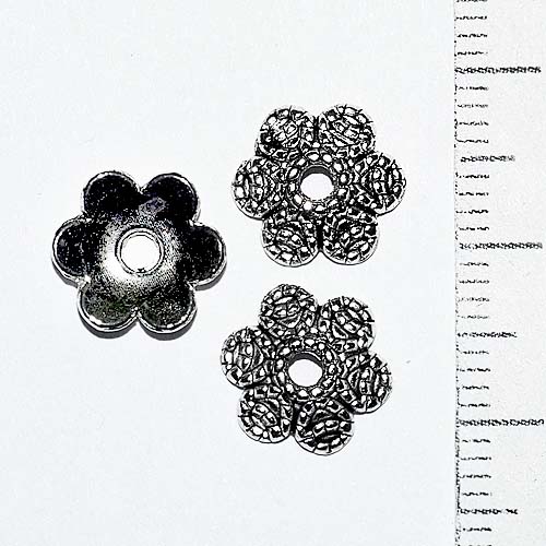 Крепежная шапочка литая Цветок шестилистный 0009137 серебряный цвет 10x2 мм