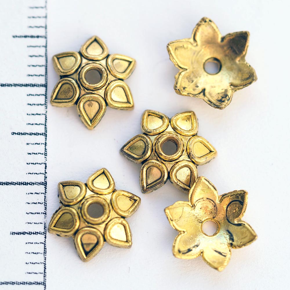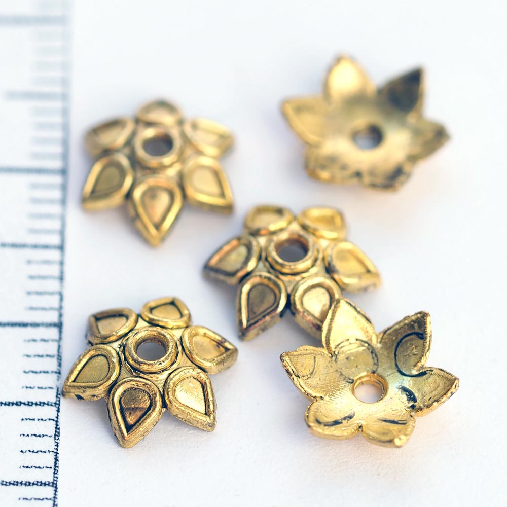 Крепежная шапочка литая Цветок шестилистный 0009187 золотой цвет 10x3 мм