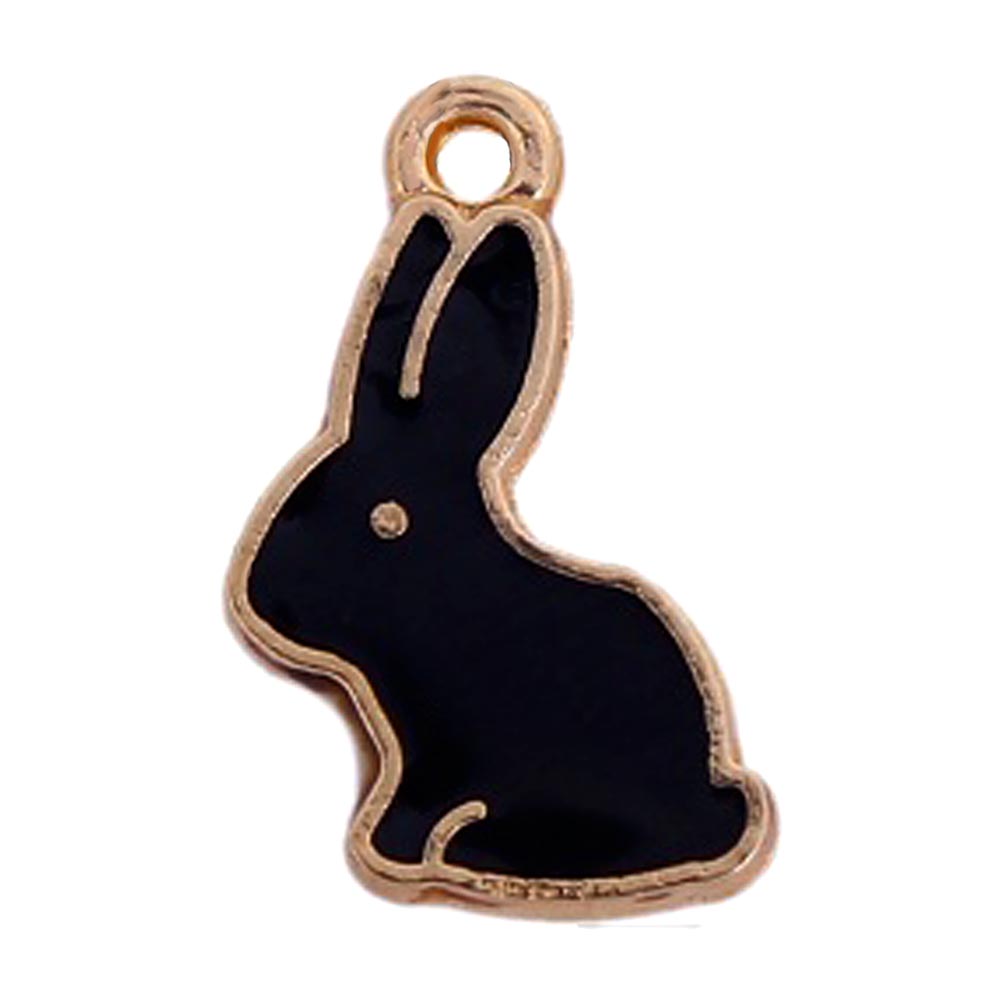 Подвеска Зайчик с черной эмалью 0009192 золотой цвет 17x9х1 мм