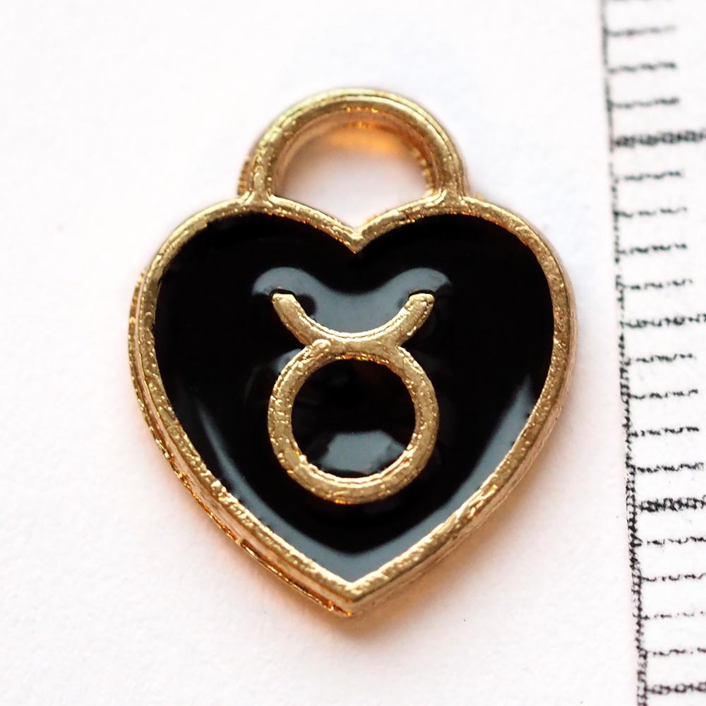 Подвеска Сердце со знаком зодиака Телец с черной эмалью 0009196 золотой цвет 14x12х1.5 мм