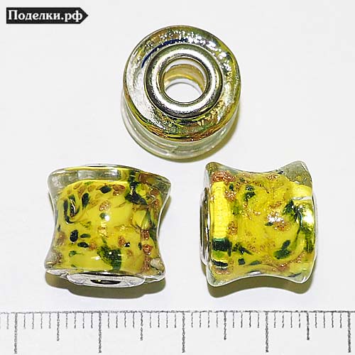 Стеклянная бусина Пандора Бочонок 0009212 желтый с зеленым и золотым 13x14 мм