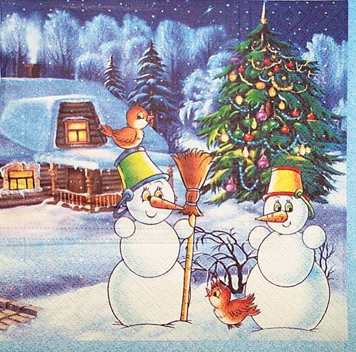 Салфетка Снеговики 0009403 трехслойная 33x33 см