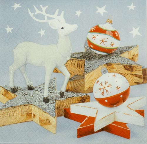 Салфетка Шары и олень 0009409 трехслойная 33x33 см